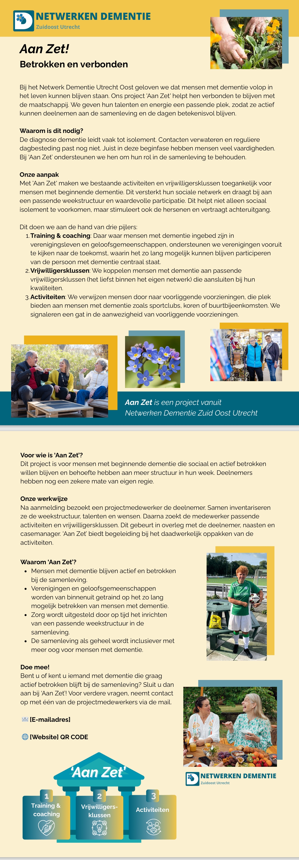 - We dragen ons steentje bij aan een positieve maatschappelijke opvatting over dementie;